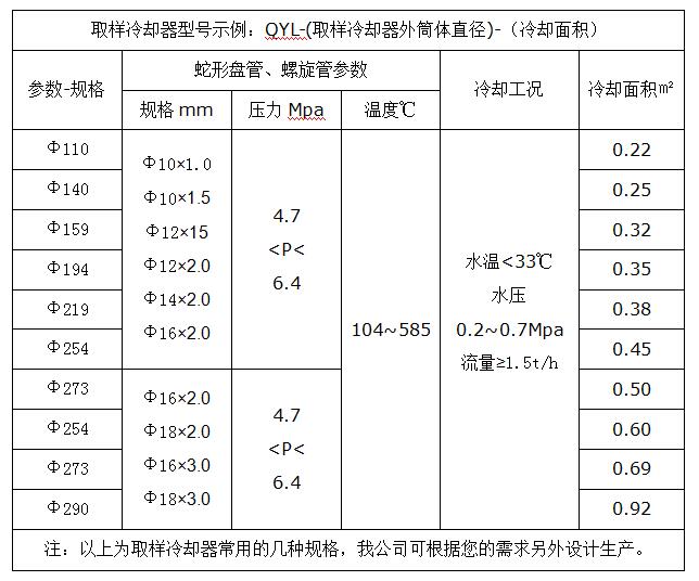 二、鍋爐取樣冷卻器設備型號與規格